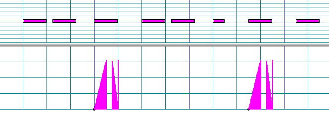 Figure 4 is the clone track. As you can see, only two notes met the conditions, so only these two notes were cloned and crossfaded. The last note should have been included, but wasn't. The very last note in range cannot be crossfaded if post note spacing is selected because there is no way to determine the distance to the next note. In the same way, if pre note spacing is selected, the very first note in a selected range cannot be crossfaded because it's distance to the note before it cannot be determined. It is therefore necessary to select a range that includes one note more at the start and end than you intend to crossfade. If you start with the very first note in a sequence, there is no way to include this note. If you select to the very last note in a sequence, it too cannot be included. The fix for this in the code is far too cumbersome to be worth the effort. Instead, it's easier to insert "dummy" notes at the start and end of the sequence to compensate for this flaw and then delete them when the crossfade program has finished running.